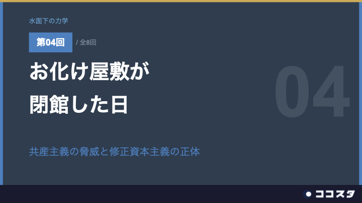 下位90%の資産シェアは1920年代の15%から1980年代の36%まで上昇し、その後23%に急落しました。この山形カーブの正体は、共産主義という「恐怖」が作った安全弁でした。