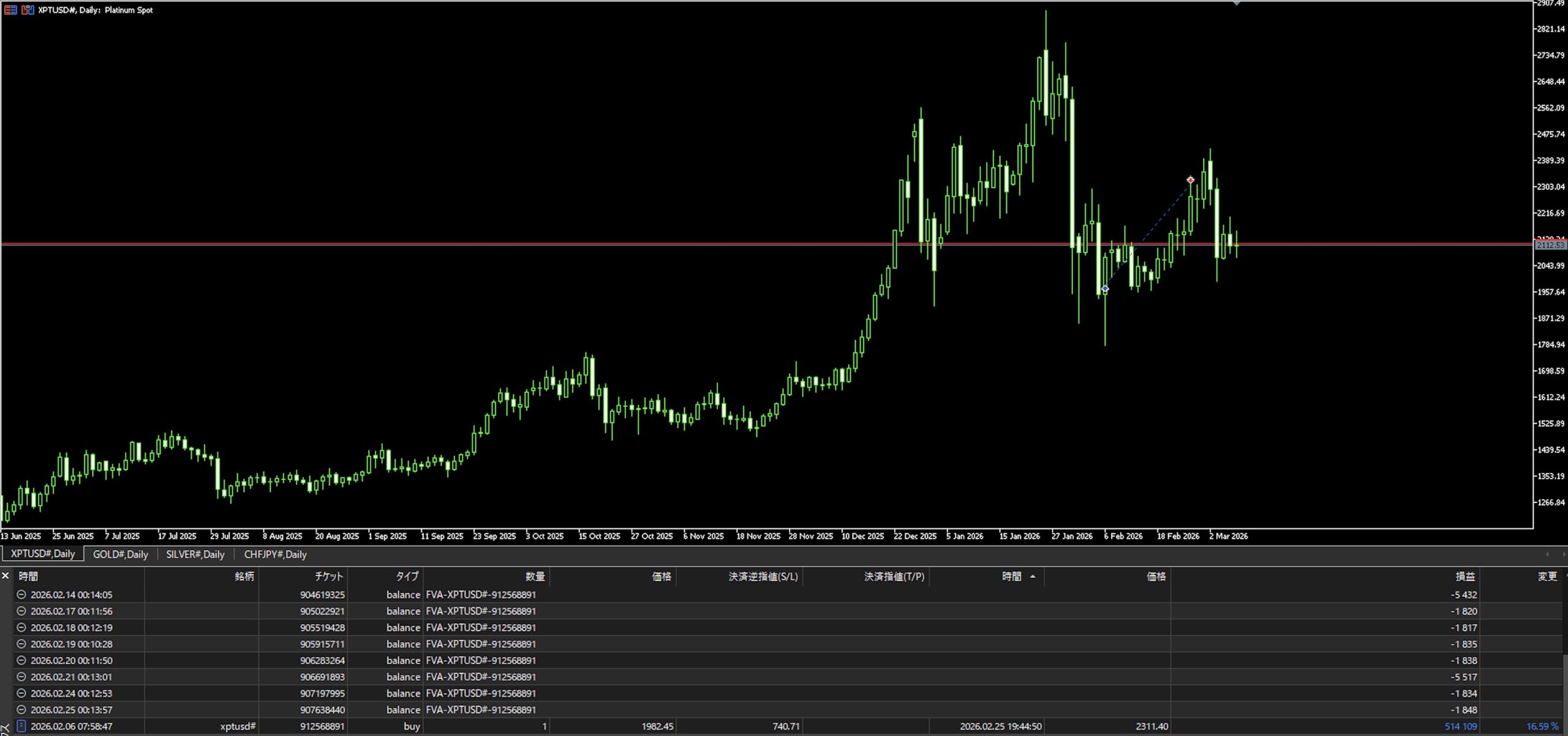 そして、その返信にはプラチナのデモ取引の画像が添付されていました。